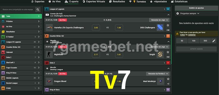 A aposta Tv7 oferece aos jogadores a experiência mais conveniente de apostas em eSports!